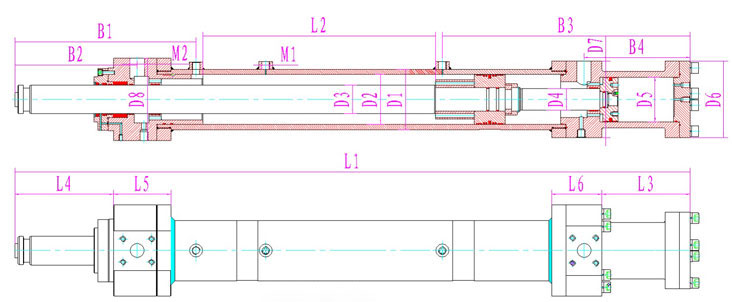 產(chǎn)品型號(hào) | 行程 | 安裝距 | 額定壓力 | L1 | L2 | L3 | L4 | L5 | L6 | D1 | D2 | D3 | D4 | D5 | D6 | D7 | D8 | B1 | B2 | B3 | B4 | M1 | M2 |